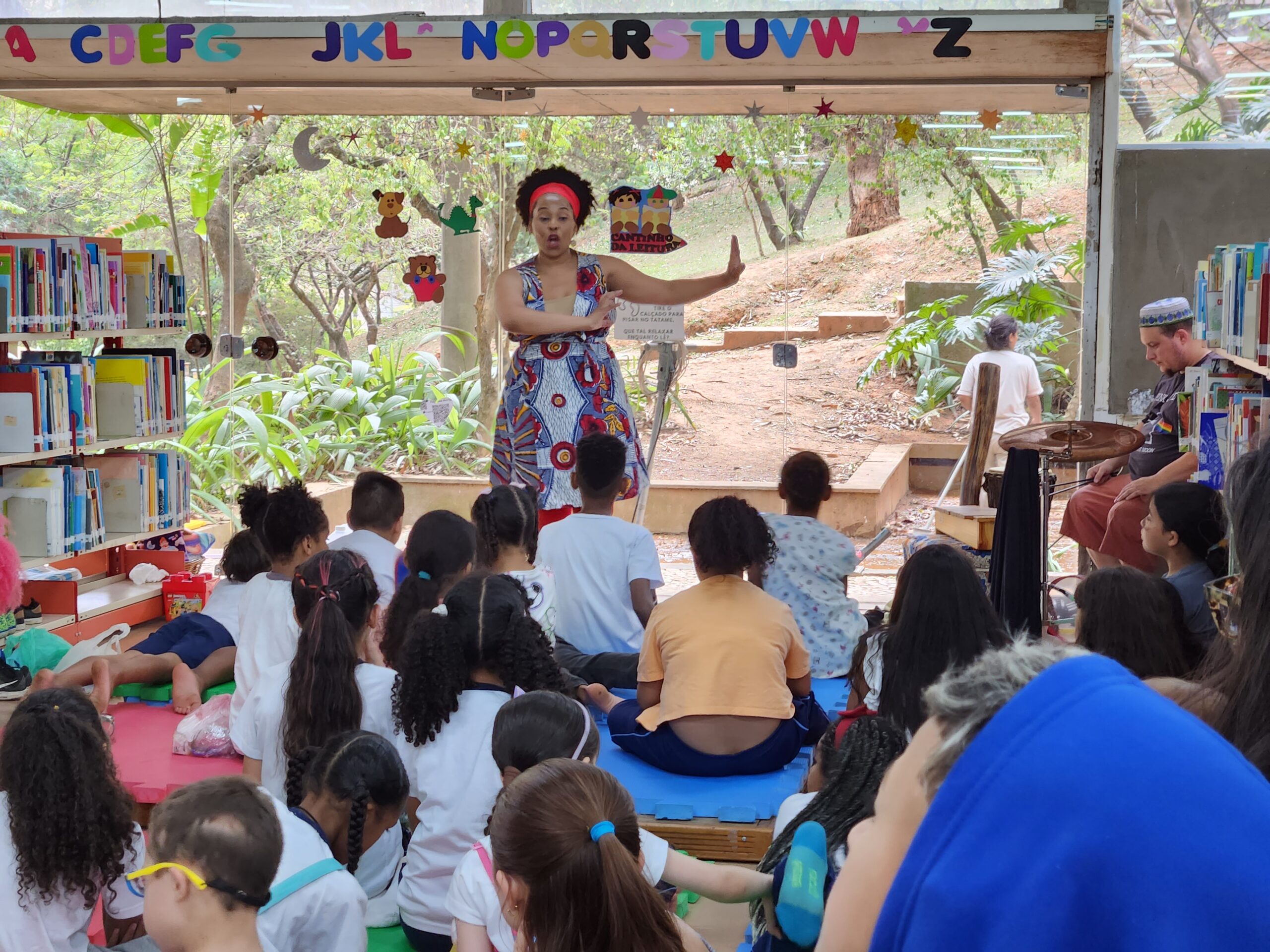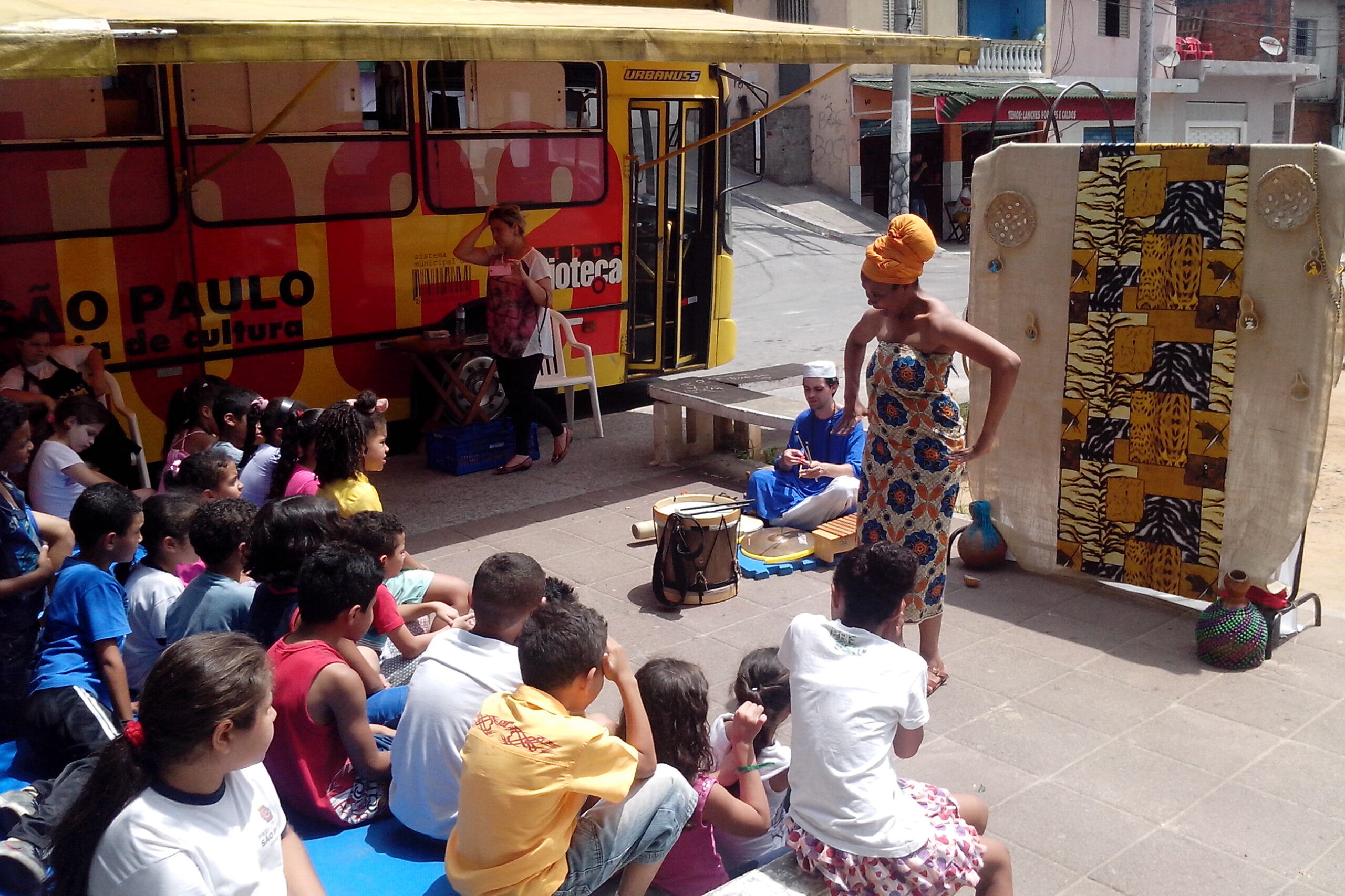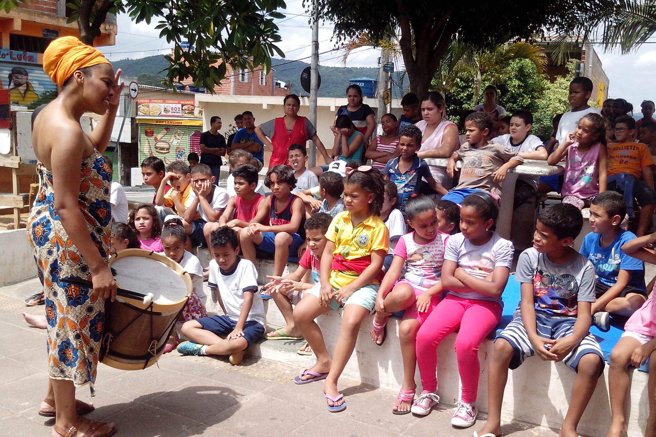 Contação de histórias afrocentradas, oficinas criativas e formação cultural para escolas, eventos e projetos sociais em todo o Brasil.