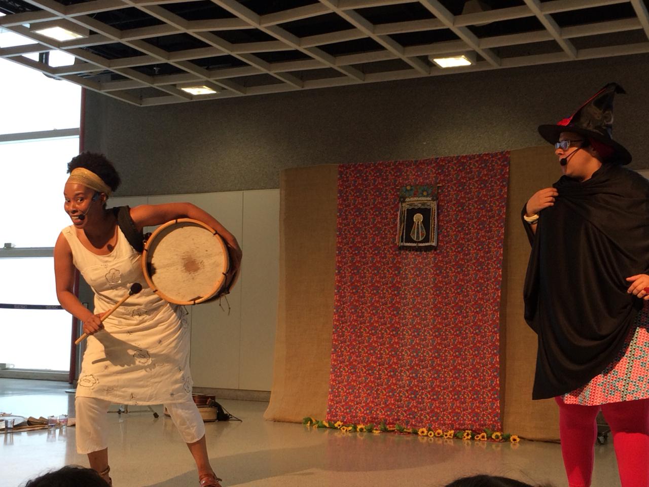Atividades criativas: bonecas Abayomi, máscaras africanas, jogos teatrais e mediação de leitura.
